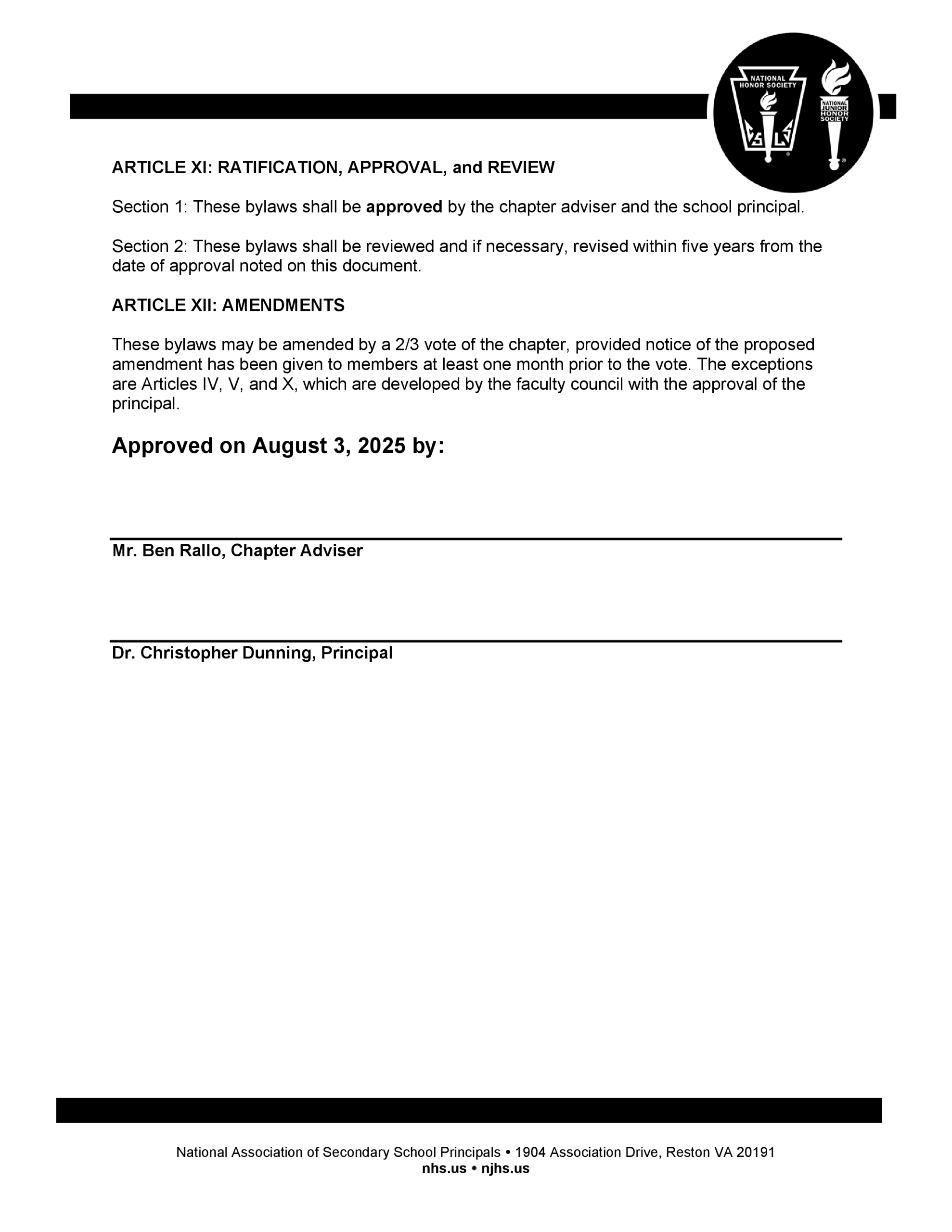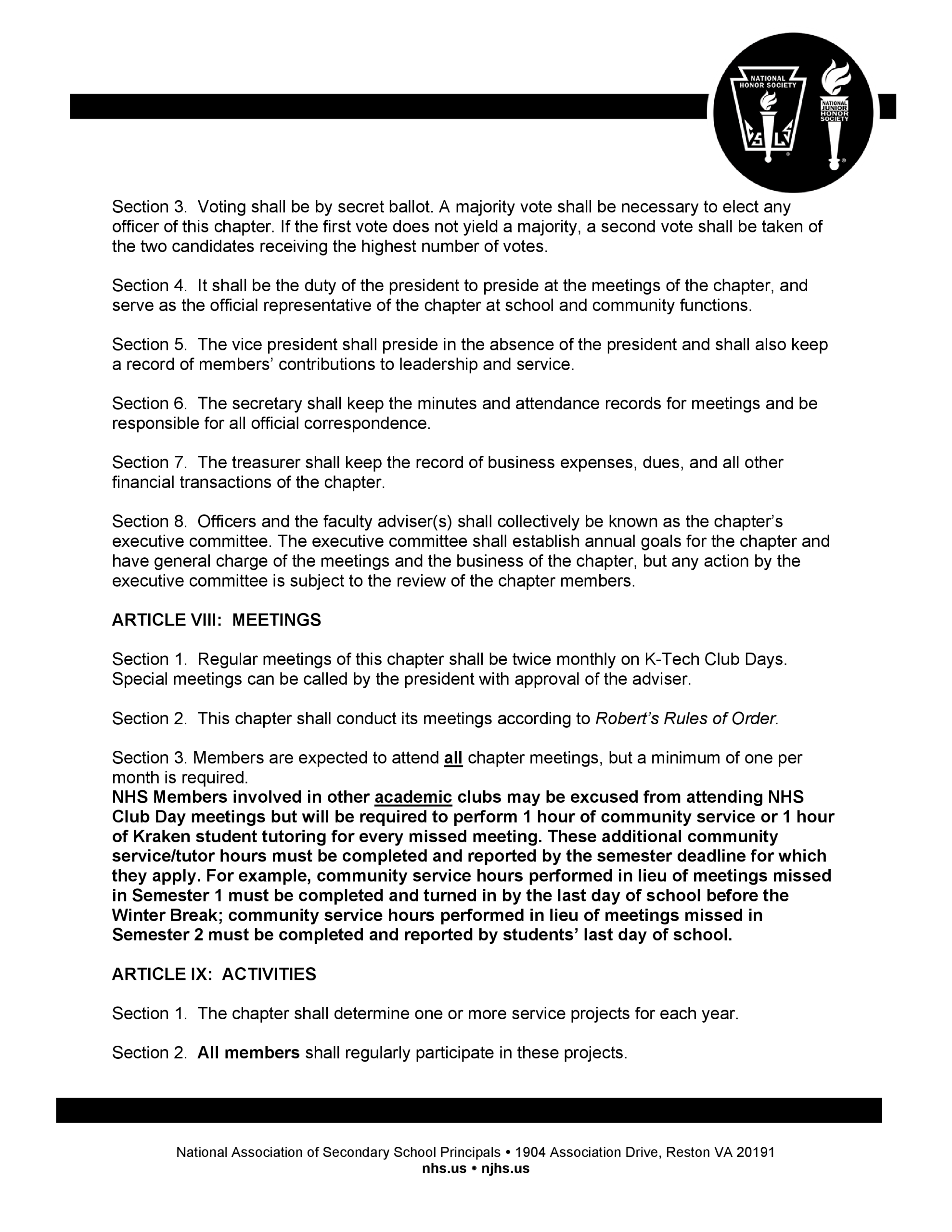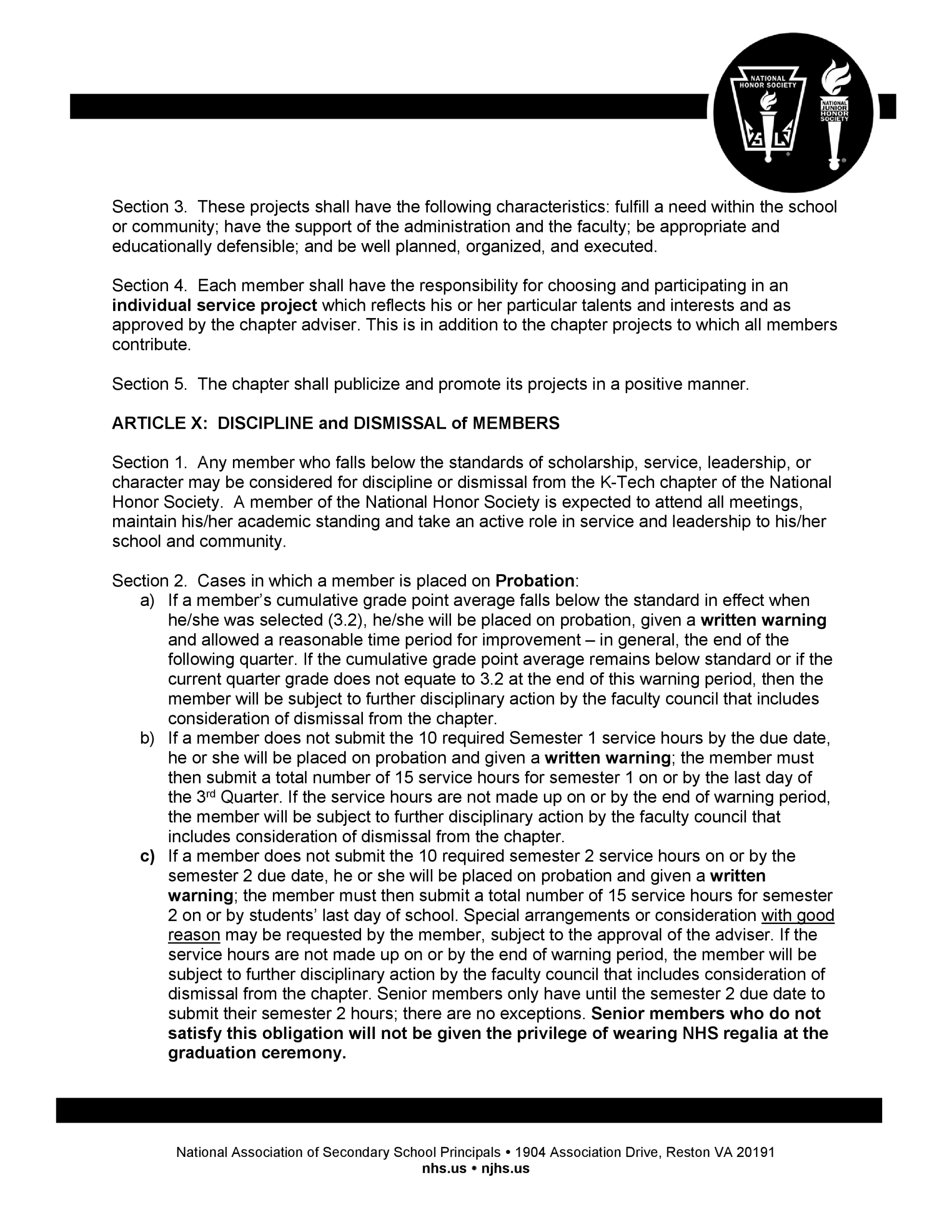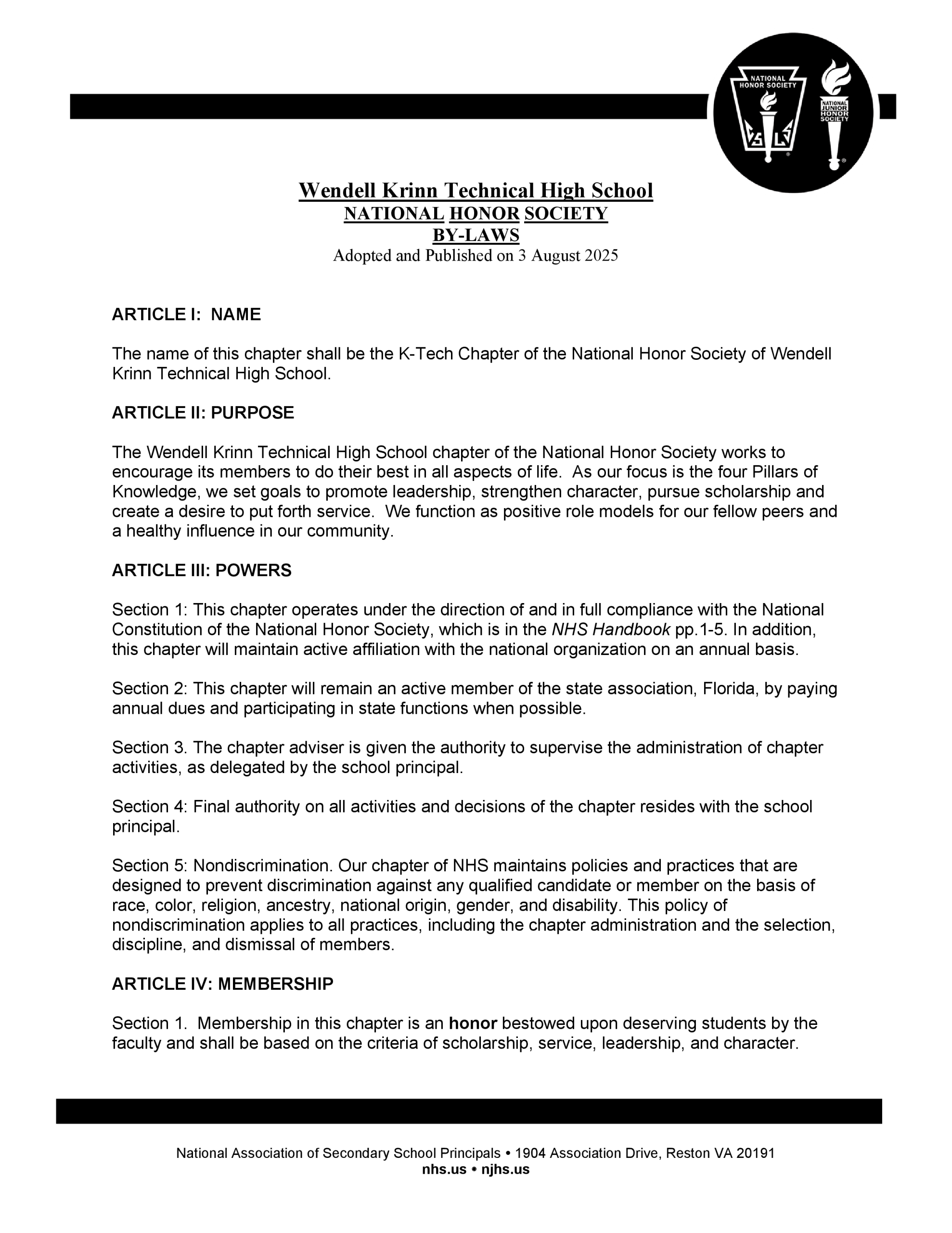 Wendell Krinn Technical High School National Honor Society bylaws