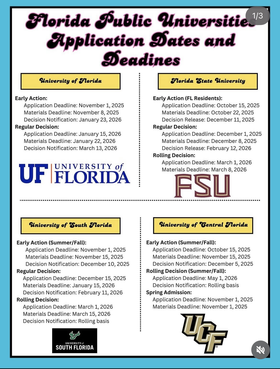 Florida Public Universities Application Dates and Deadlines for UF, FSU, USF, & UCF