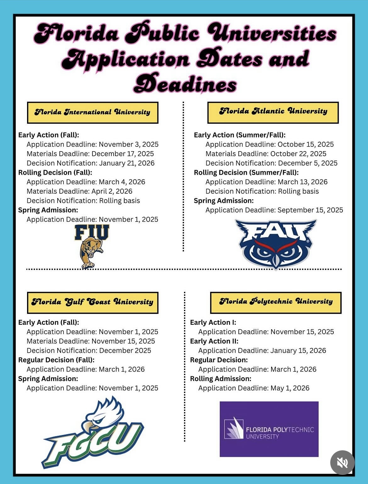 Florida Public Universities Application Dates and Deadlines for FIU, FAU, FGCU, & FPU