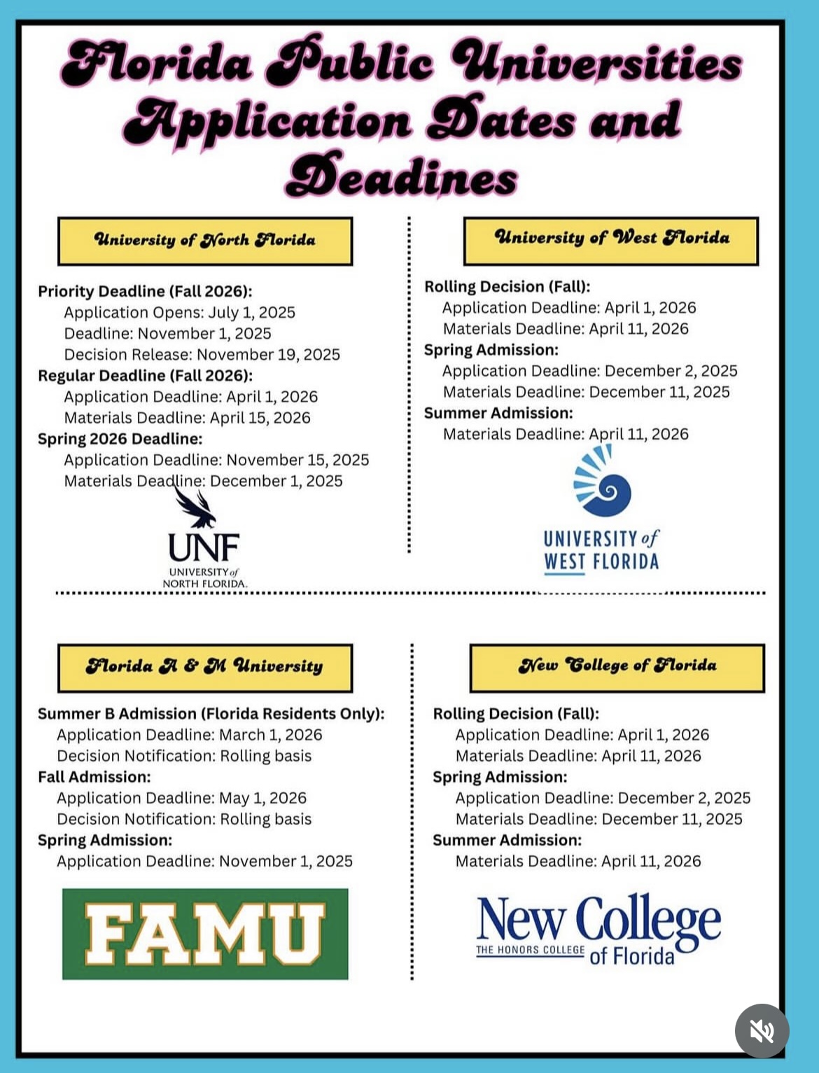 Florida Public Universities Application Dates and Deadlines for UNF, UWF, FAMU, & NCF