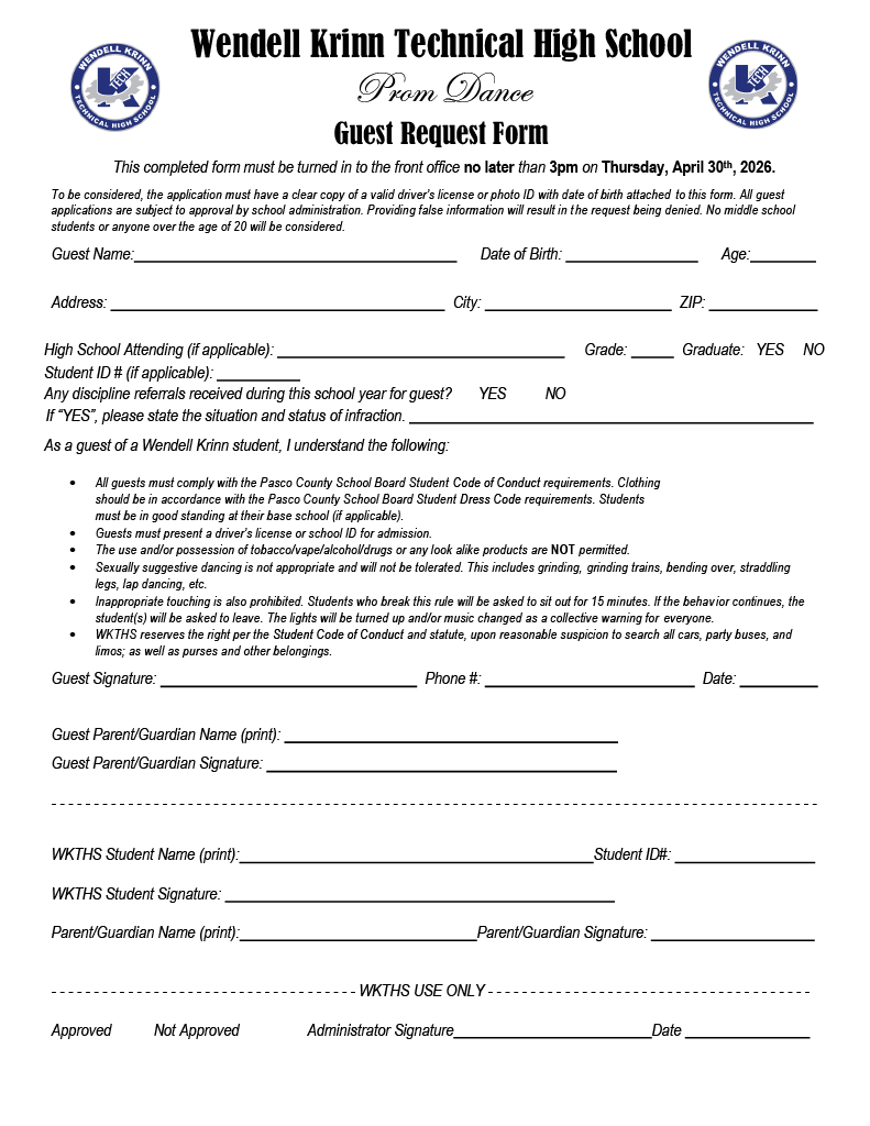 Class of 2026 Important Dates/Information Prom May 1, 2026 – Kapok Event Center Prom Guest Request Form Senior Awards Ceremony May 20, 2026 @ 9:00am Senior Breakfast/Scholarship Awards - Student Event only May 22, 2026 @ 9:30am – Marchman Dining Hall Senior Grad...